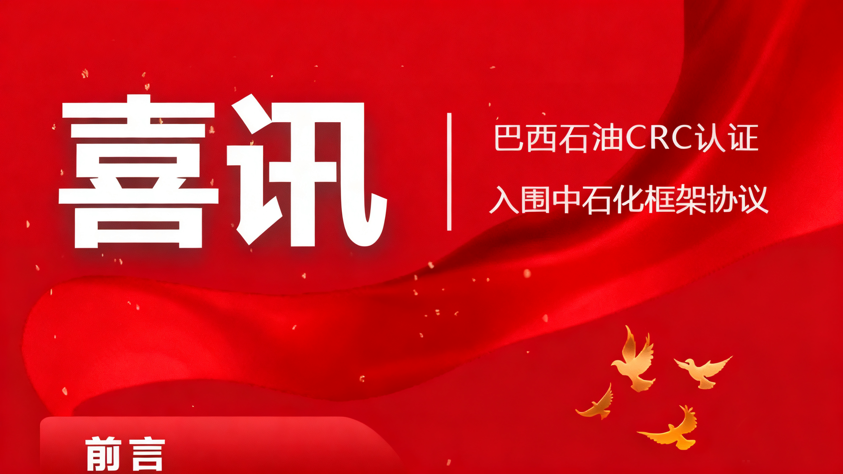 威?;C(jī)械有限公司近日接連斬獲國(guó)際國(guó)內(nèi)兩大高端市場(chǎng)入場(chǎng)券:成功通過(guò)巴西CRC認(rèn)證,正式進(jìn)入巴西石油供應(yīng)商體系;同時(shí)入圍…